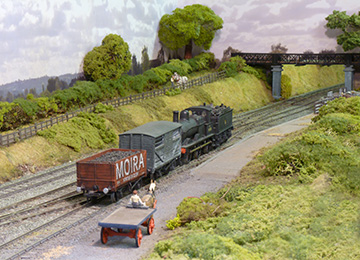 The final feature is the footbridge built for the Thornewill family to link Dovecliff Hall with Craythorne Hall, both in their ownership. Only the brick piers remain, the lattice iron span, possibly a product of local engineering company Thornewill and Wareham, having been removed during the sixties. Advantage has been taken of "modeller's license" by moving this structure close to the carriage dock due to restricted space.