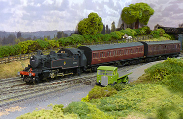 Standard class 2, 2-6-2 tank engines, nos. 84006/7/8 as seen in the model photograph, handled the Jinny from the summer of 1953, but by the time of the final service, Ivatt class 2, 2-6-2 tank locomotive 41277 had taken charge.