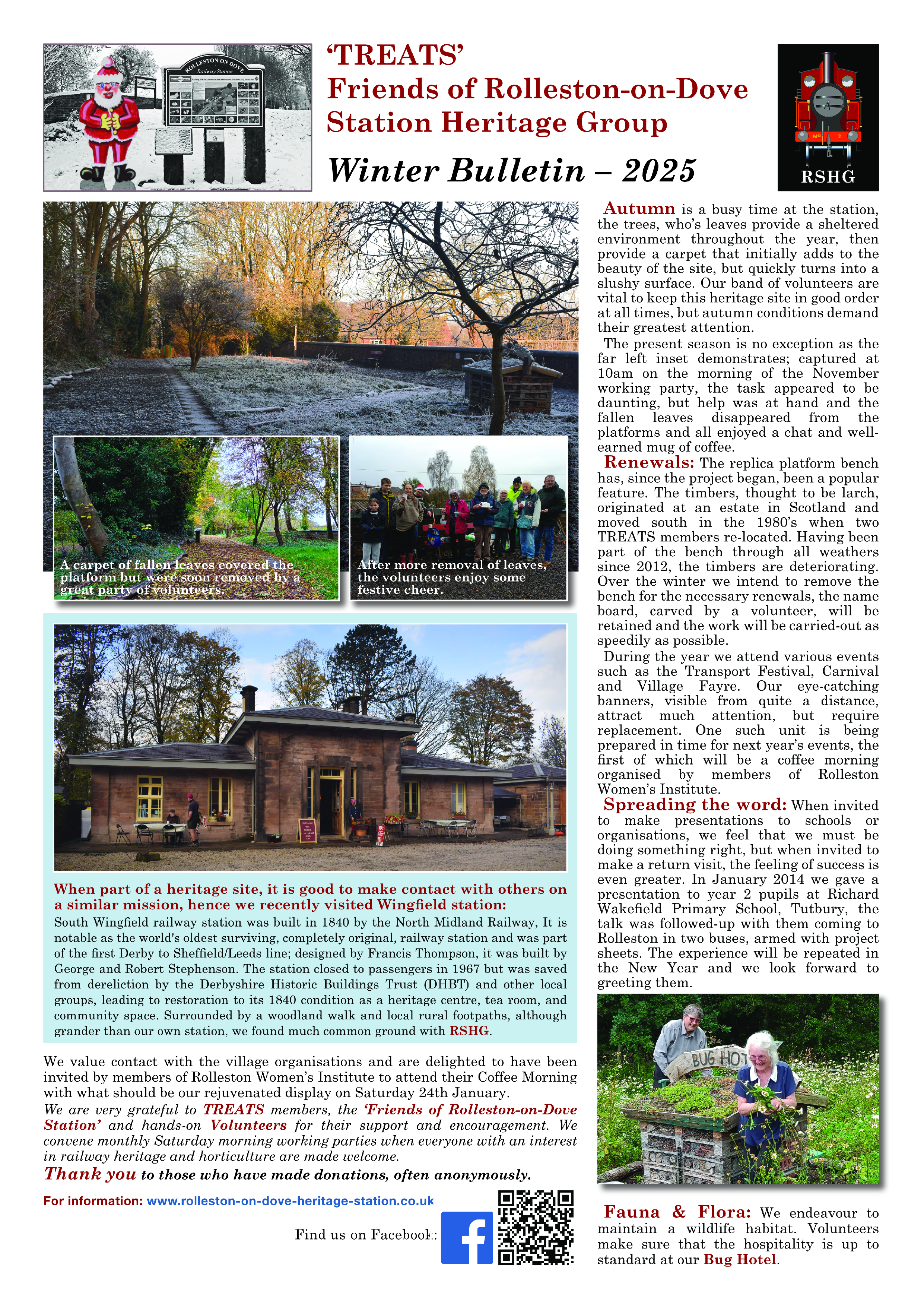 Rolleston-on-Dove Station Heritage Group (RSHG) is a volunteer organisation under the umbrella of The Rolleston Engineering and Transport Society (TREATS). The mission is to maintain the surviving railway artifacts as well as the fauna and flora.